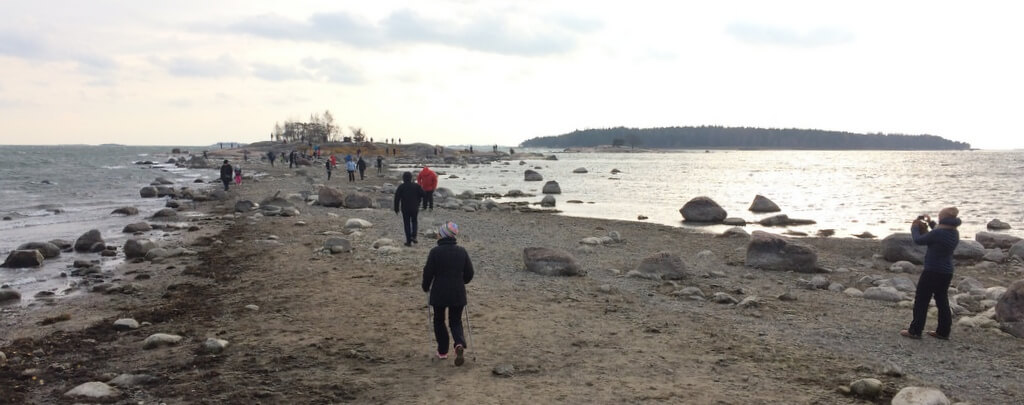 Kävimme kokeilemassa merenpohjaa pitkin kulkemista Helsingin Lauttasaaren edustalla, jossa laskenut merivesi on avannut reitin Sisä-Hattu -nimiselle luodolle. Luodolla on tietysti myös kätkö.