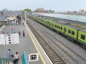 Pelkästään GC43:lla käyntiä varten autoa ei kannata vuokrata. Dublinista pääsee helposti junalla Brayn kylään. DART-paikallisjuna kulkee Dublinin Connollyn asemalta 45 minuutissa Bray Dalyn asemalle. Junia kulkee epäsäännöllisen säännöllisesti ja viikonloppunakin junia menee yksi tai kaksi tunnissa. Tarkemmat aikataulut kannattaa varmistaa Irishrailin sivuilta. Junarata kulkee merenrantaa seuraillen ja jo matka on maisemallisesti hieno. Menopaluulippu Dublinista Brayhin maksaa 6,85 euroa ja lippuja voi ostaa asemien automaateista.