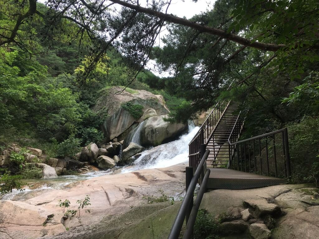 Eri luontokohteita on tarjolla todella paljon. Me lähdimme valloittamaan Bukhan-vuorta Bukhansanin kansallispuistoon. Kotimaisiin vaellusreitteihin verrattuna polut ovat paikoin melko vaativia ja huonoilla kengillä metsään ei kannata lähteä. Paikoin merkitty reitti saattaa nousta hyvin jyrkkää kallioseinämää pitkin ja kiipeämisen avuksi polulle on viritelty köysiä. Kansallispuiston luonto on suomalaiseen metsään tottuneelle kasvillisuudeltaan aika tutun oloista, mutta vuoriston jylhät maastonmuodot eroavat Suomesta. Bukhansan-vuorelle vievä polku on jatkuvaa ylämäkeä ja matkan varrella on komeita vesiputouksia.