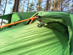 Sisäteltan katossa on pienet koukut, joissa kiertää naru. Koukkuihin saa kiinnitettyä valon ja naruun voi laittaa varusteita kuivumaan. Mukana tullut naru tuntuu vähän turhan pitkältä ja jos siihen ripustaa vaatteita kuivumaan löytää ne yöllä naamaltaan roikkumasta. Narua on kuitenkin helppo lyhentää sitomalla siihen vaikka pieni lenkki, jolloin naru pysyy kireänä.