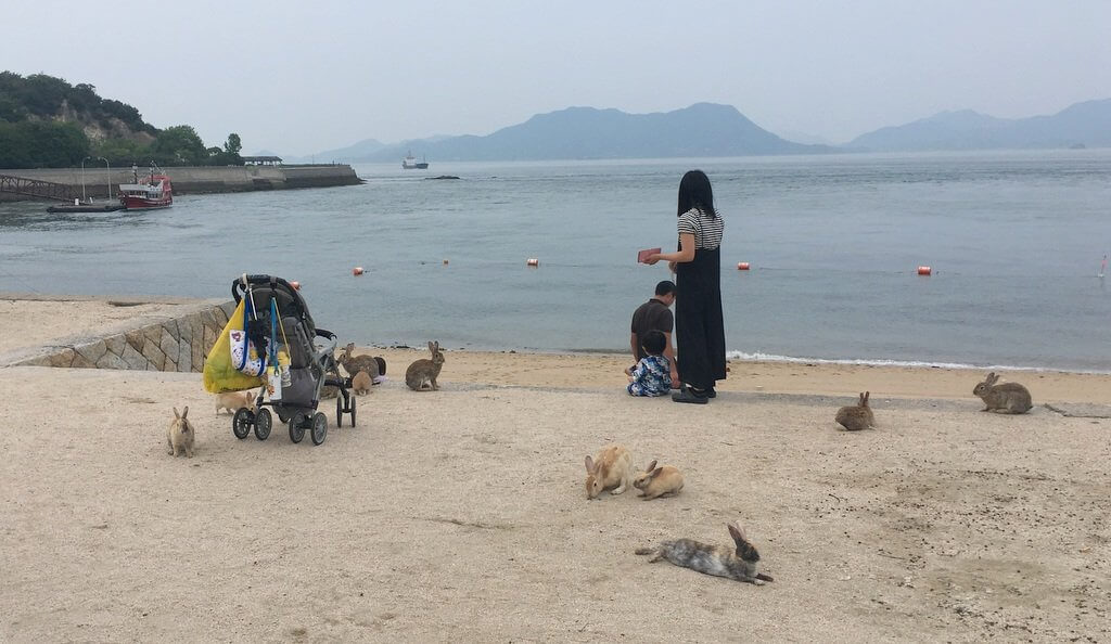 Japanilaiset ovat tunnetusti kaiken söpön perään ja kanit selvästi kutkuttavat tätä tarvetta. Paikalliset perheet tulevat saarelle viettämään aikaa ja ovat aivan haltioissaan ylisöpöistä pupuista.