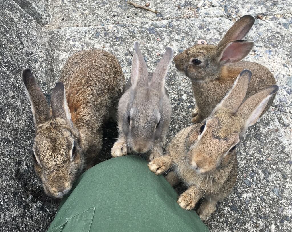 Japanilaiset ovat tunnetusti kaiken söpön perään ja kanit selvästi kutkuttavat tätä tarvetta. Paikalliset perheet tulevat saarelle viettämään aikaa ja ovat aivan haltioissaan ylisöpöistä pupuista.