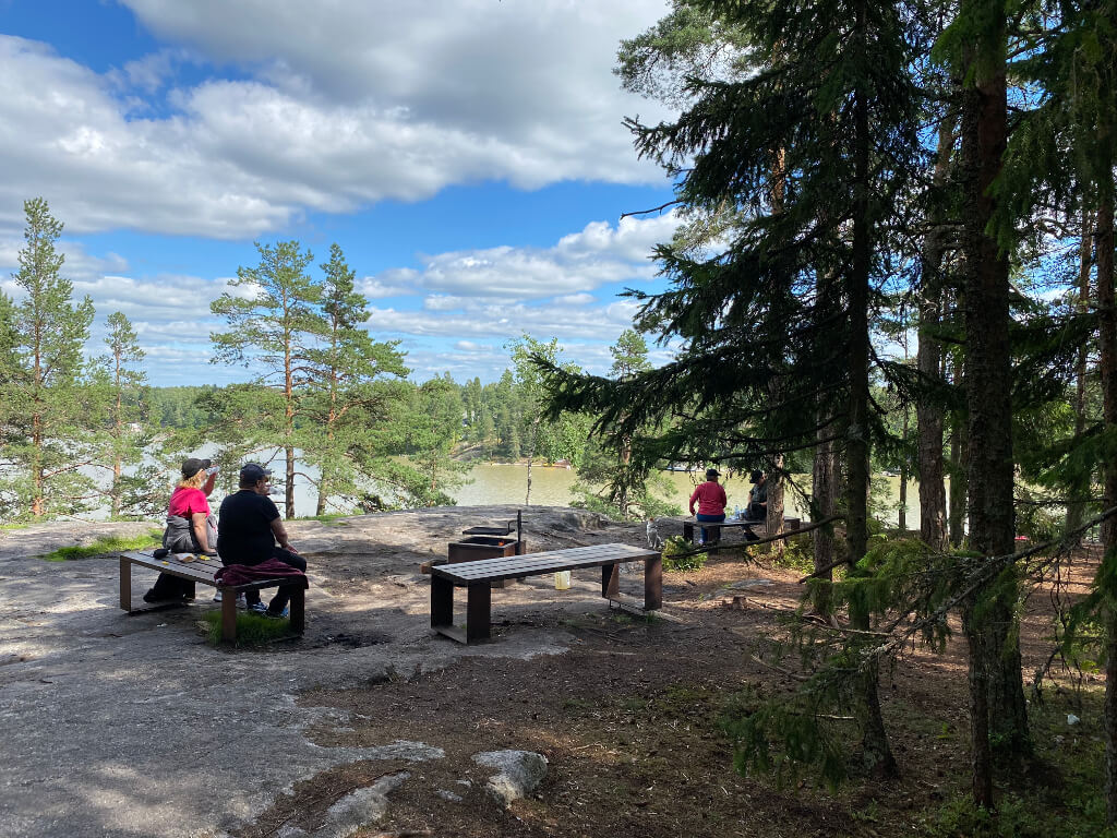 Parhaalta näköalapaikalta Sarvikallionlaelta löytyy mukava nuotiopaikka, josta voi ihastella maisemia Tuusulanjärven yli Halosenniemen suuntaan. Kuten aina Uuvin alueilla, puuhuolto toimii hyvin ja nuotiopaikan läheltä löytyy puuvaja.