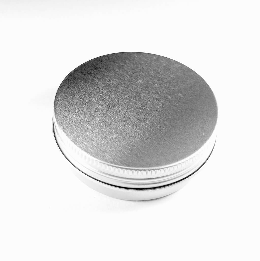 Pieni alumiinirasia kierrekannella. Halkaisija 5 cm, korkeus 1,5 cm.