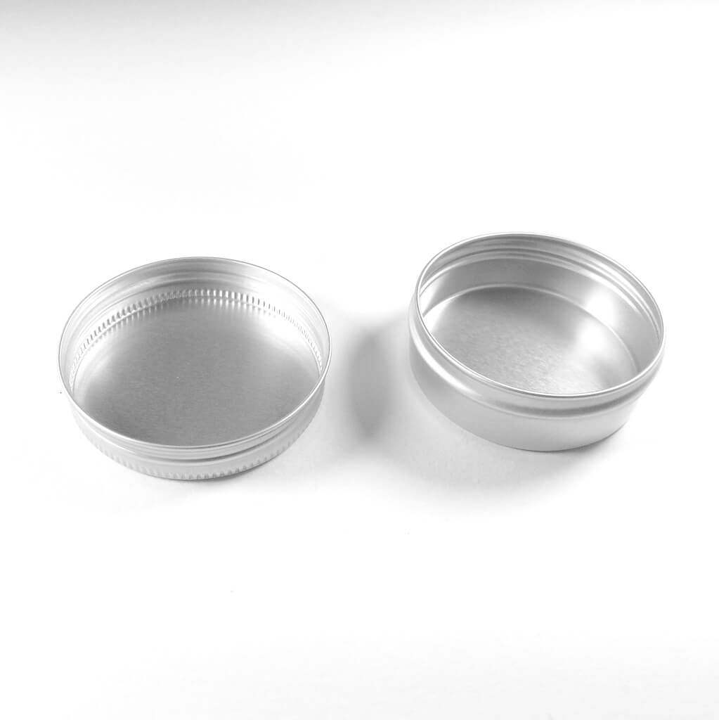 Pieni alumiinirasia kierrekannella. Halkaisija 5,6 cm, korkeus 1,9 cm.