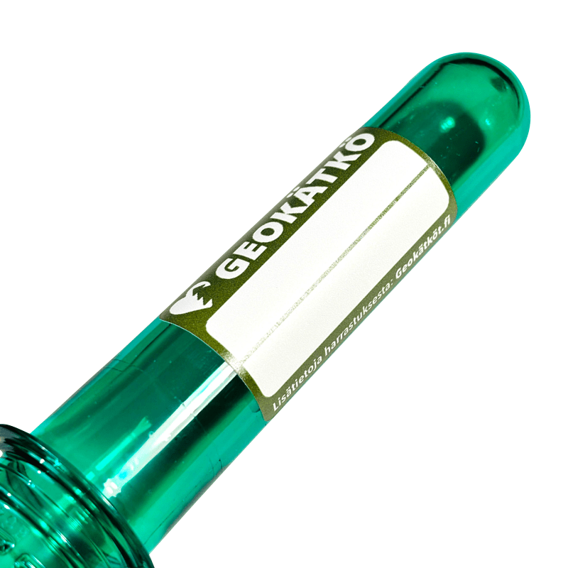 Pienen tarran etuna on, että sama tarra sopii niin suureen kuin pieneenkin kätköpurkkiin.