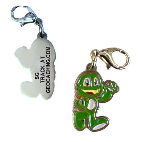 Oho, nyt on pieni geokolikko! Tämä Signal-sammakko mahtuu moneen mikrokokoiseenkin geokätköön. Signal-sammakko on geokätköilysivu Geocaching.com:n maskotti.